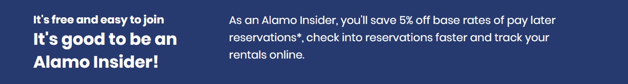 Viralliset ALAMO-kupongit ovat toinen tapa säästää enemmän, kun teet varauksen tämän palveluntarjoajan kanssa. Ja voit hyötyä uskomattomista alennuksista riippumatta siitä, oletko uusi vai olemassa oleva asiakas.