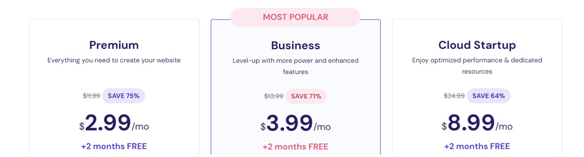 Jos haluat päästä käsiksi parhaisiin ominaisuuksiin käyttäessäsi Hostingeria, suosittelemme, että luot oman tilin, jotta saat henkilökohtaista ja räätälöityä sisältöä ja kampanjatarjouksia. Sen jälkeen sinun tulisi päättää, mikä palvelu sopii sinulle paremmin. Ehkä et halua verkkosivuston rakentajaa ja vain verkkotunnuksen. On todella tärkeää päättää, mikä vastaa parhaiten tarpeitasi ja budjettiasi. Ja sitten sinun pitäisi päättää parhaasta tilaussuunnitelmasta. Suosittelemme, että kiinnität huomiota kunkin suunnitelman kuvaukseen, jotta voit hyötyä suurimmista työkaluista ja ominaisuuksista verkkosivustollesi tai blogillesi ja niin edelleen ja niin edelleen.